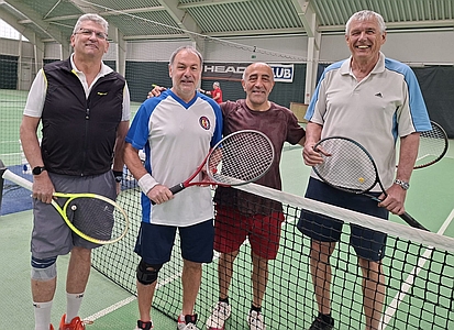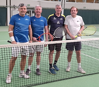 Als Abschluss der MM-Mannschaftsmeisterschaft der Karawanken Tennis-Senioren spielen heuer erstmals die jeweils 3 Topplatzierten Teams aus Unterkärnten und Klagenfurt noch ein Vergleichsspiel. Den Anfang machten am 01.04. der HSV mit Wobak/Holzer gegen Stein/Jauntal mit Huss/ Petritsch. In Klagenfurt wehte offensichtlich ein schärferer Wind für die Unterkärntner. Josef und Gerald siegten gegen Max und Peter mit 6:3, 6:2.